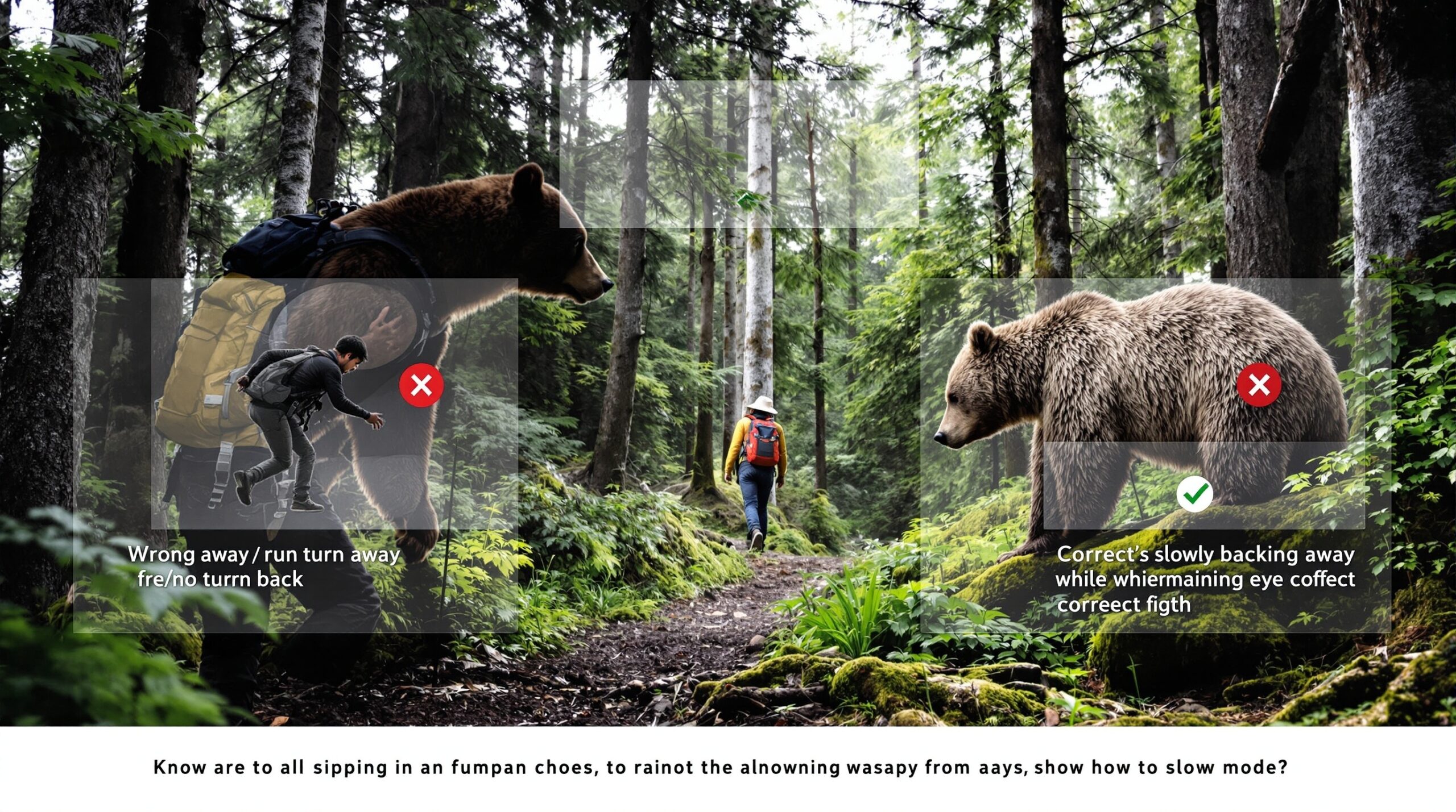 • 推奨行動:目を離さず、ゆっくり後退する落ち着いてください。クマがこちらに気づいていたら、クマから目を離さず(ただし、睨みつけるのはNG)、クマの様子を見ながら、ゆっくりと後退します。騒いだり、大声を出したりしてもいけません 。静かにその場を離れるのが鉄則です 。