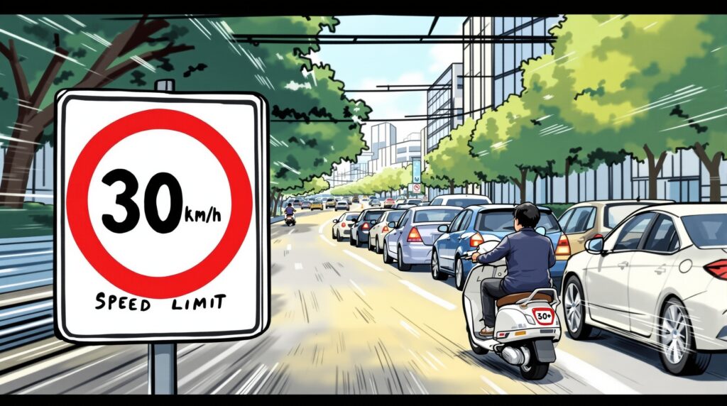 正直、「車体性能が上がってるのに、なんで流れの速い幹線道路であの危険な30km/h走行を続けなきゃいけないんだ!」という不満が爆発しそうですが…それが今のルールです 。
