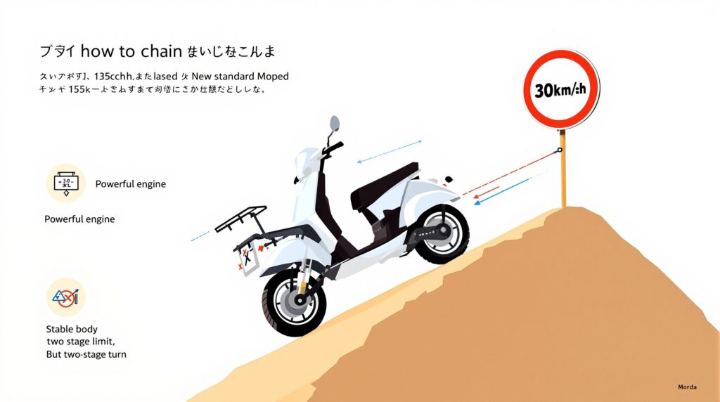 - 最大の欠点:ルールが変わらない:車体が立派になっても、法律上は50cc。つまり、あの忌々しい「時速30km/h制限」と「二段階右折」はそのまま残り続けます 3。