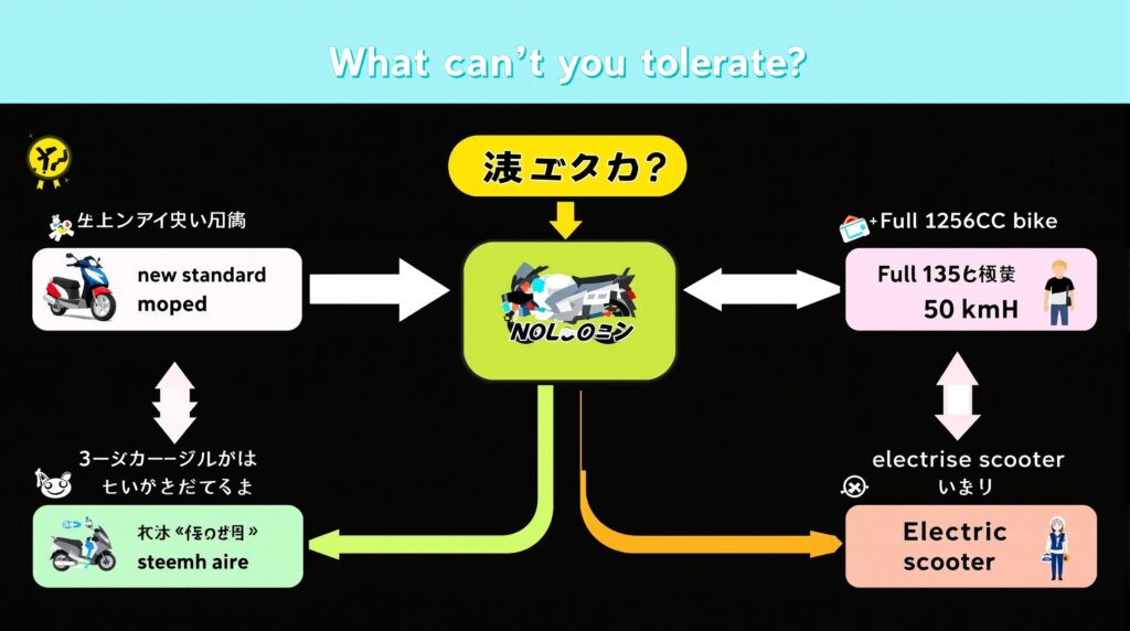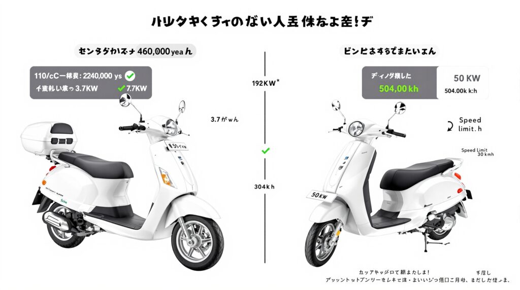 今回は、この**「新基準原付 vs 在庫50cc」のガチ比較**を軸に、「結局、どれがあなたにとって正解なのか?」を徹底的にシミュレーションします。